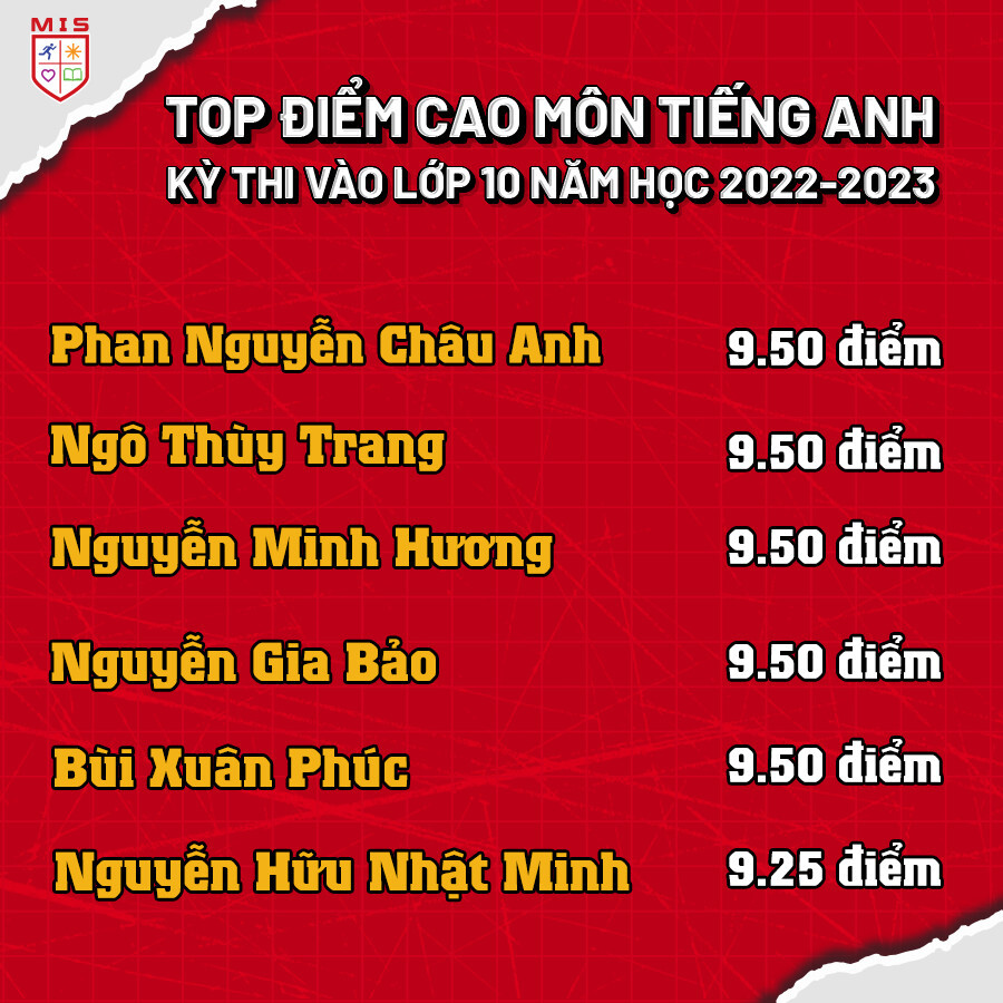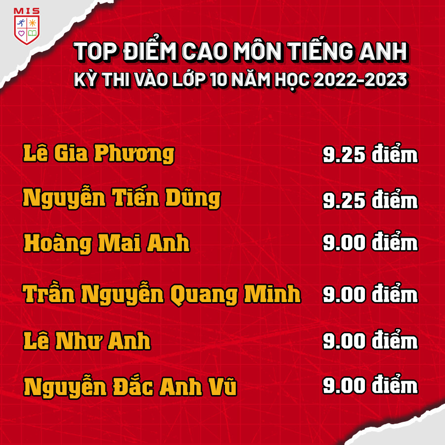 TOP ĐIỂM CAO MÔN TIẾNG ANH