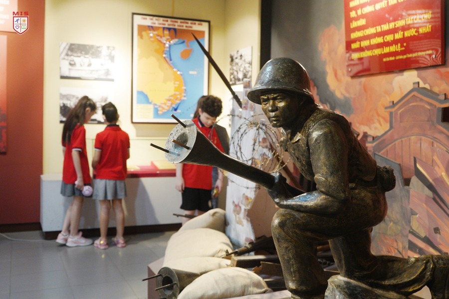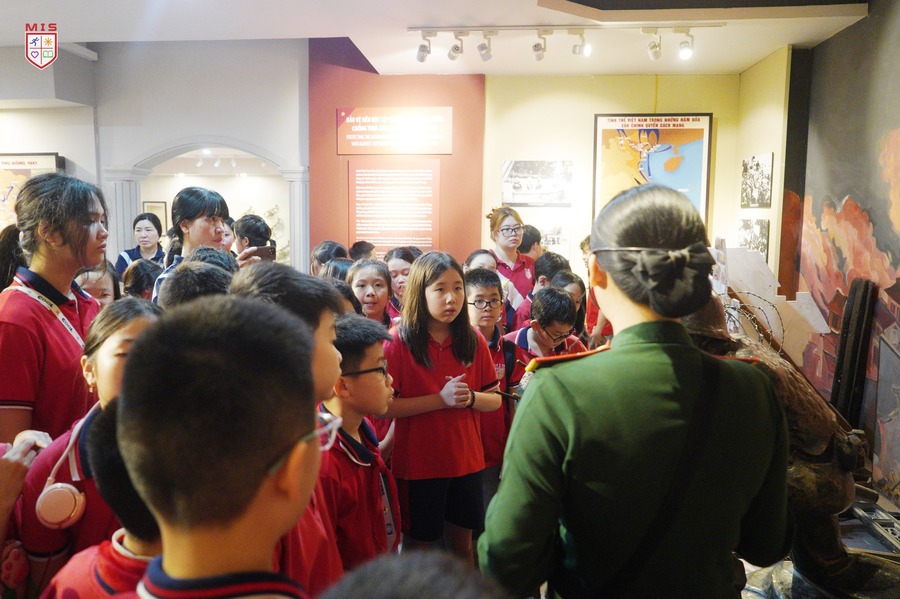 Buổi sáng rạng ngời, ánh nắng ấm dần len lỏi qua những hàng cây xanh mướt, tạo nên bức tranh thiên nhiên yên bình bên ngoài Bảo tàng Quân đội. Với MISers khối 4 và khối 5, đây không chỉ là một buổi tham quan thông thường, mà còn là cơ hội đặc biệt để các con hiểu thêm về một chiến thắng vĩ đại của dân tộc – Chiến thắng Điện Biên Phủ.