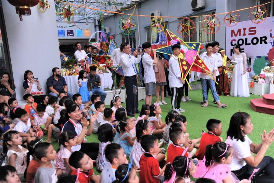 Lễ hội Trung thu ở trường Đa Trí Tuệ MIS đã mang lại những kỷ niệm đẹp với học sinh, nơi nơi trong Lễ hội đều có thể thấy niềm vui của các em, nhưng mấy ai để ý thấy niềm hạnh phúc lấp lánh trong ánh mắt của các cha mẹ học sinh, các thày cô, các cán bộ nhân viên tổ chức, phục vụ Lễ hội! Đó là Hạnh phúc khi thấy Sứ mệnh của mình đơm quả ngọt, Hạnh phúc khi rung động vì niềm vui của “bọn trẻ”. Đâu đó trong các nhóm phụ huynh học sinh lớp, các bố mẹ còn dặn nhau “Hôm nay để chúng nó vui nhé, bỏ qua khuyết điểm của chúng nó nhé, Trung thu mà!”.