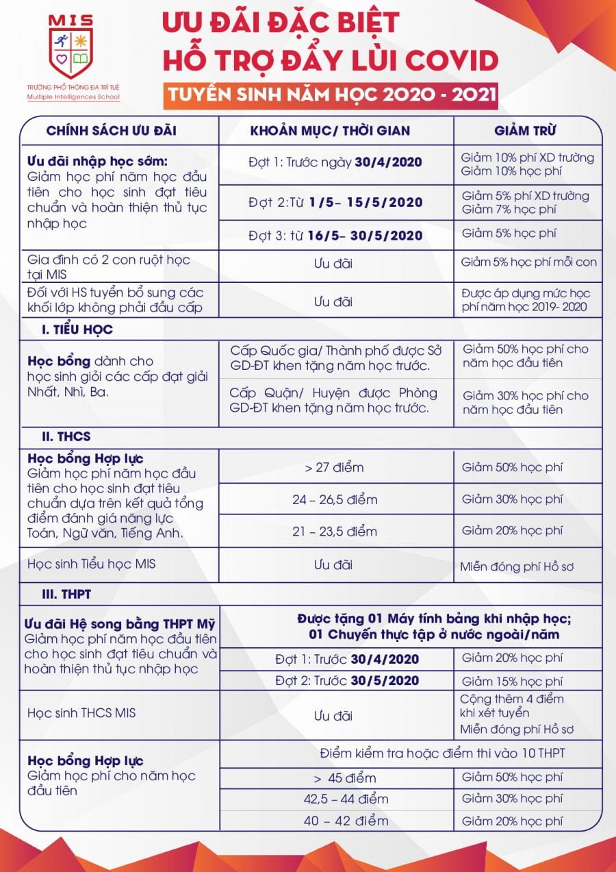 CHÍNH SÁCH ƯU ĐÃI TUYỂN SINH ĐỢT 3 – NĂM HỌC 2023-2024 (Từ 01/05 – 30/6/2023)