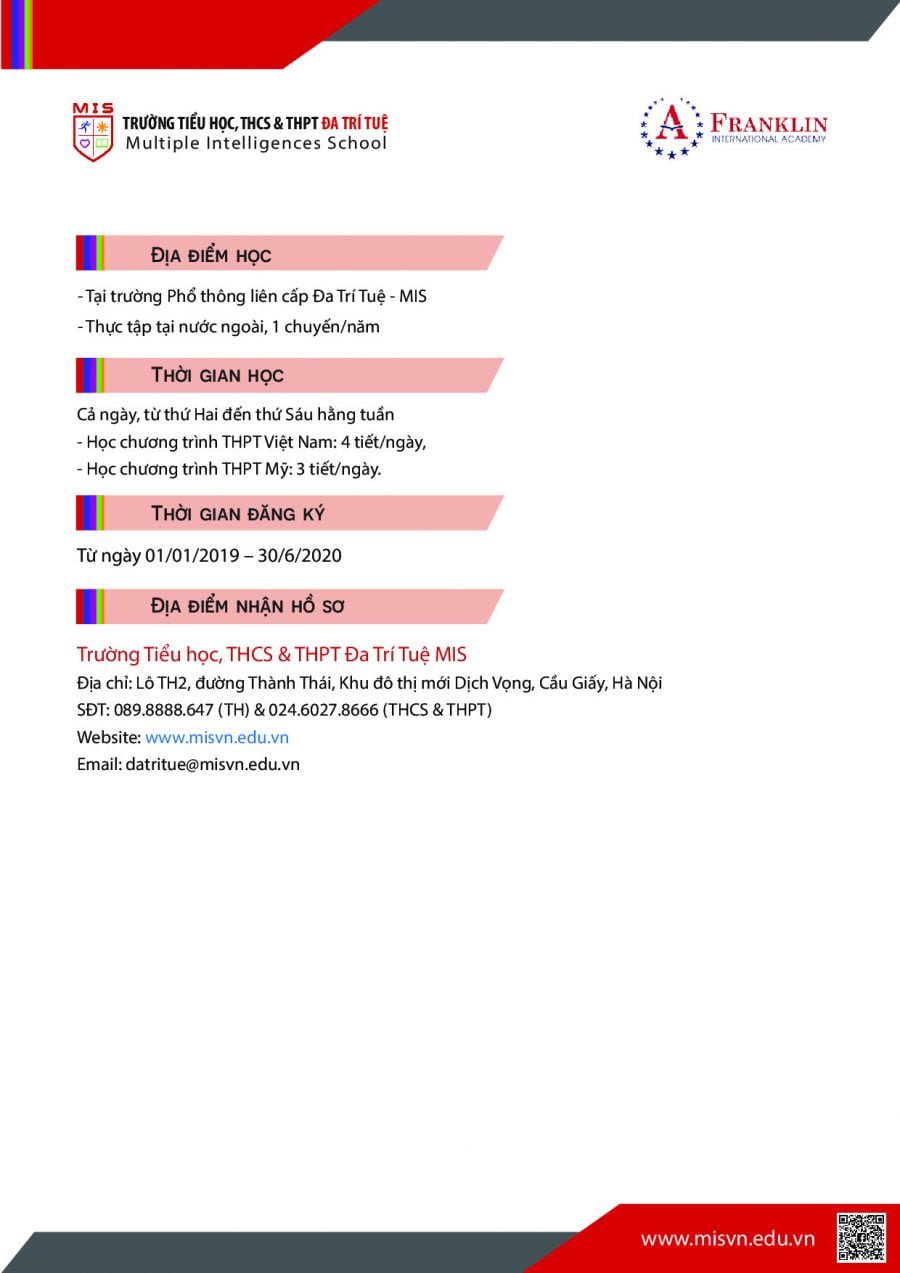 Tuyển sinh Song bằng THPT Mỹ – Quốc tế thừa nhận – Năm học 2020 – 2021