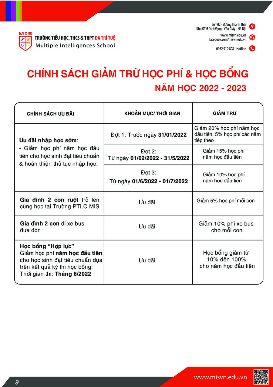 CHÍNH SÁCH ƯU ĐÃI TUYỂN SINH ĐỢT 3 – NĂM HỌC 2023-2024 (Từ 01/05 – 30/6/2023)