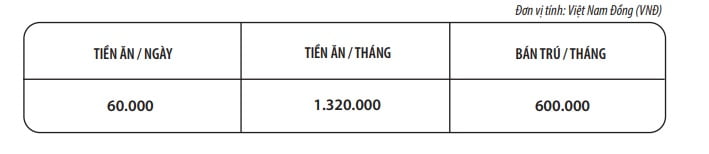 - Chi phí tiền ăn nộp cùng tiền học phí.
