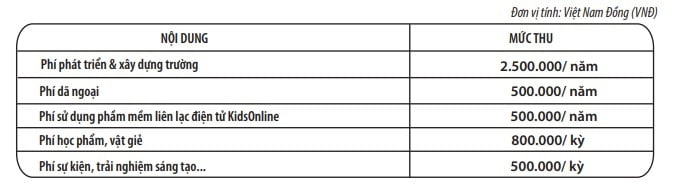 - Phí phát triển và xây dựng trường: là khoản phí nộp trước khi nhập học, đóng mỗi năm 1 lần và sẽ không được hoàn trả trong bất kỳ trường hợp nào.