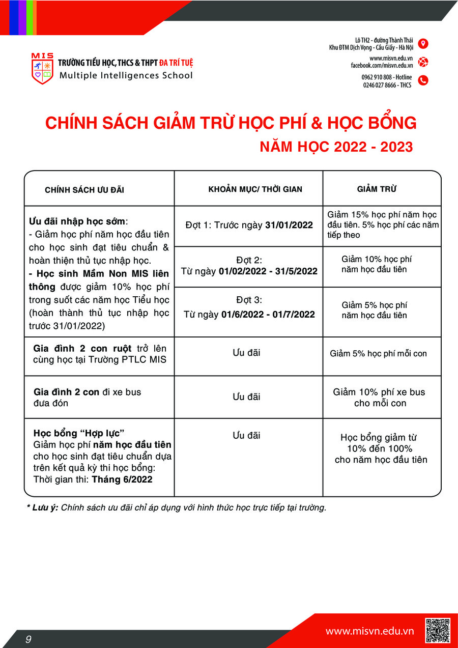 CHÍNH SÁCH ƯU ĐÃI TUYỂN SINH ĐỢT 3 – NĂM HỌC 2023-2024 (Từ 01/05 – 30/6/2023)