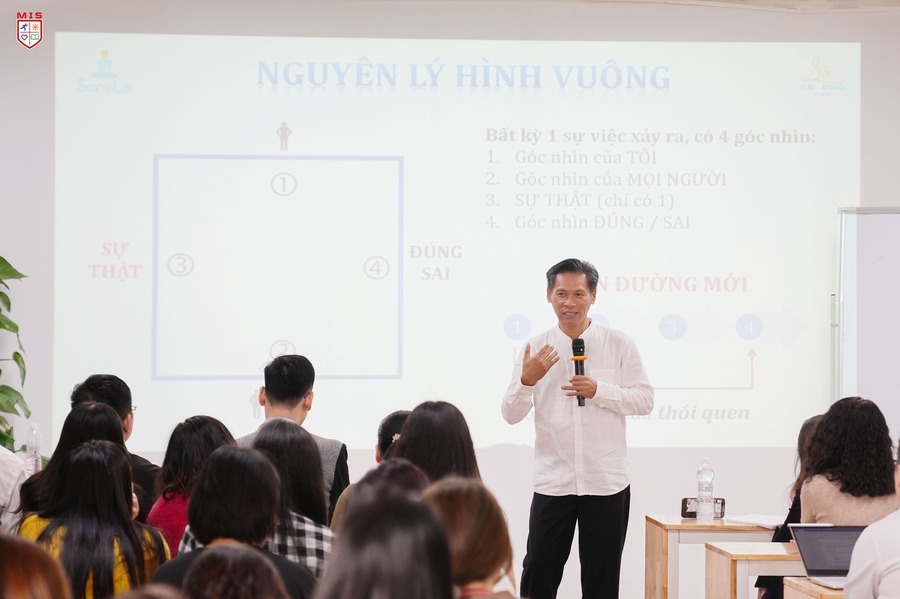 Tại buổi đào tạo Trí tuệ cảm xúc #1 trước đó, Thầy đã truyền đạt để mọi người hiểu cấu trúc làm việc của não bộ, Nhận thức – Hiểu & Quản trị được cảm xúc của mình đến Ứng dụng vào trong đời sống, trong việc dạy học, quản lý lớp họ. Thầy đã giúp CBGV MIS có những giải pháp thực tế có thể ứng dụng ngay sau khi kết thúc buổi đào tạo