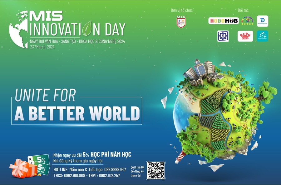 Mỗi năm là một chủ đề khác nhau và năm nay, MIS Innovation Day lần thứ 11, chúng ta cùng nhau UNITE FOR A BETTER WORLD – cùng nhau hướng về 17 mục tiêu PHÁT TRIỂN BỀN VỮNG đã được Liên Hợp Quốc thông qua, kêu gọi hành động toàn cầu bảo vệ hành tinh của chúng ta và đảm bảo mọi người dân được sống hoà bình và thịnh vượng vào năm 2030.