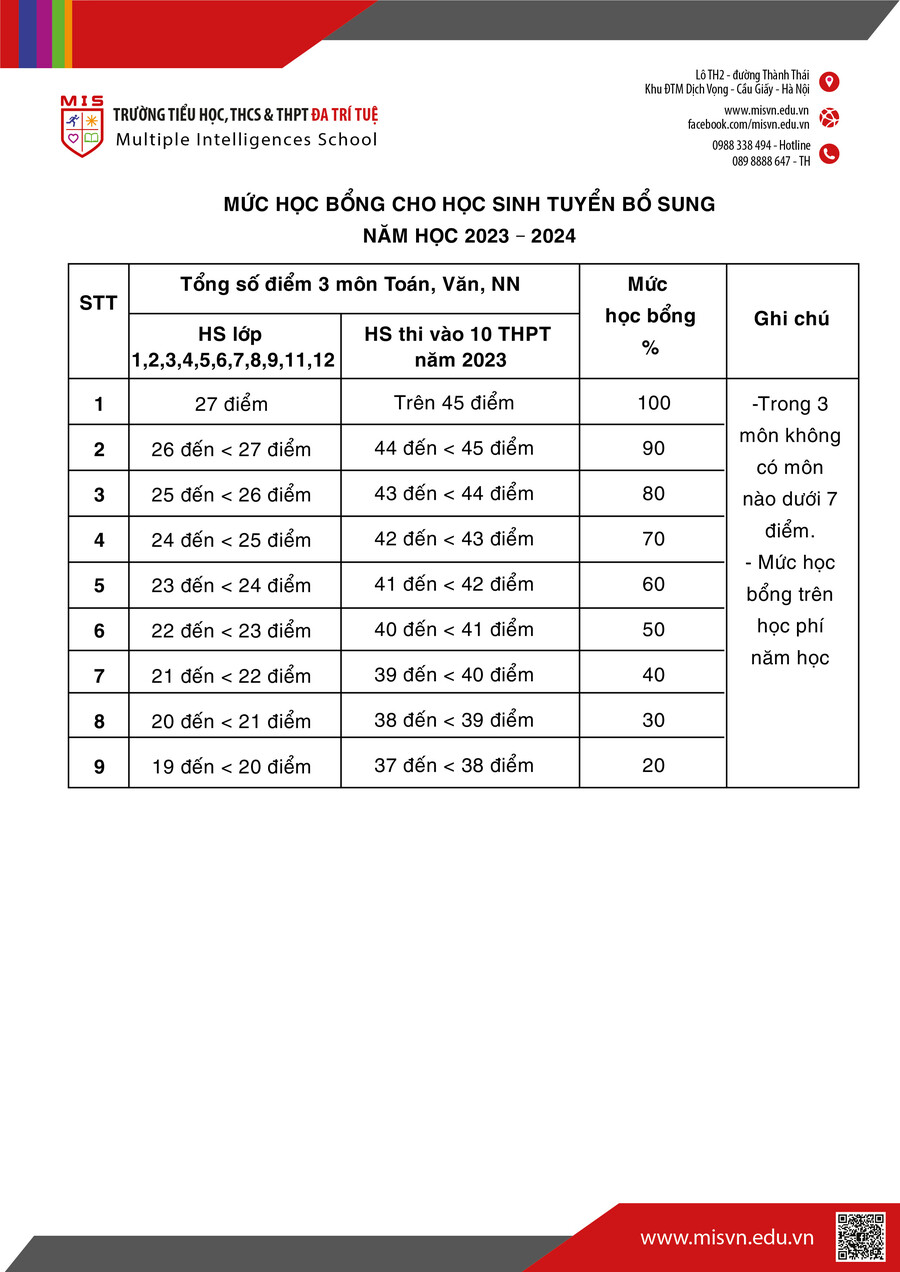 ƯU ĐÃI HỌC BỔNG DÀNH CHO HỌC SINH TUYỂN BỔ SUNG NĂM HỌC 2023-2024