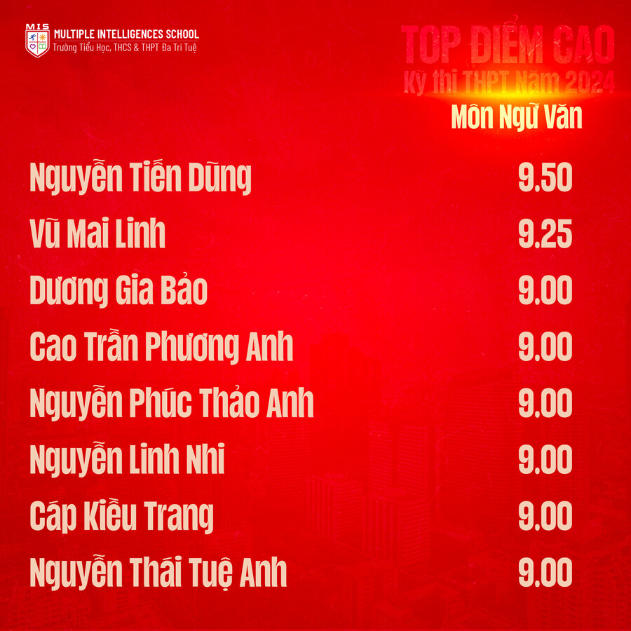 Xin chúc mừng MISers đã đạt thành tích cực kỳ xuất sắc trong môn Ngữ Văn trong kỳ thi tốt nghiệp THPT.