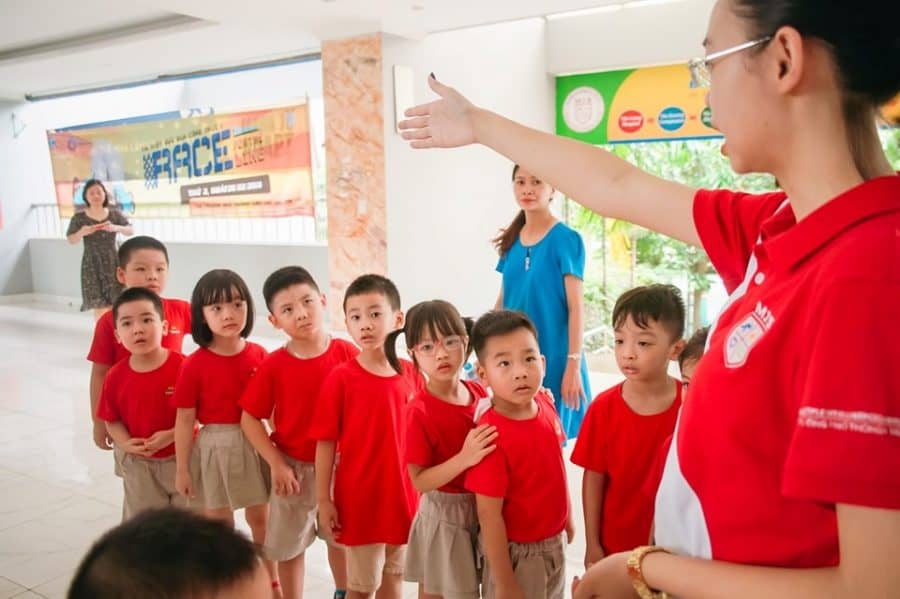 “Chúng con chào trường MIS, chào các cô ạ!”