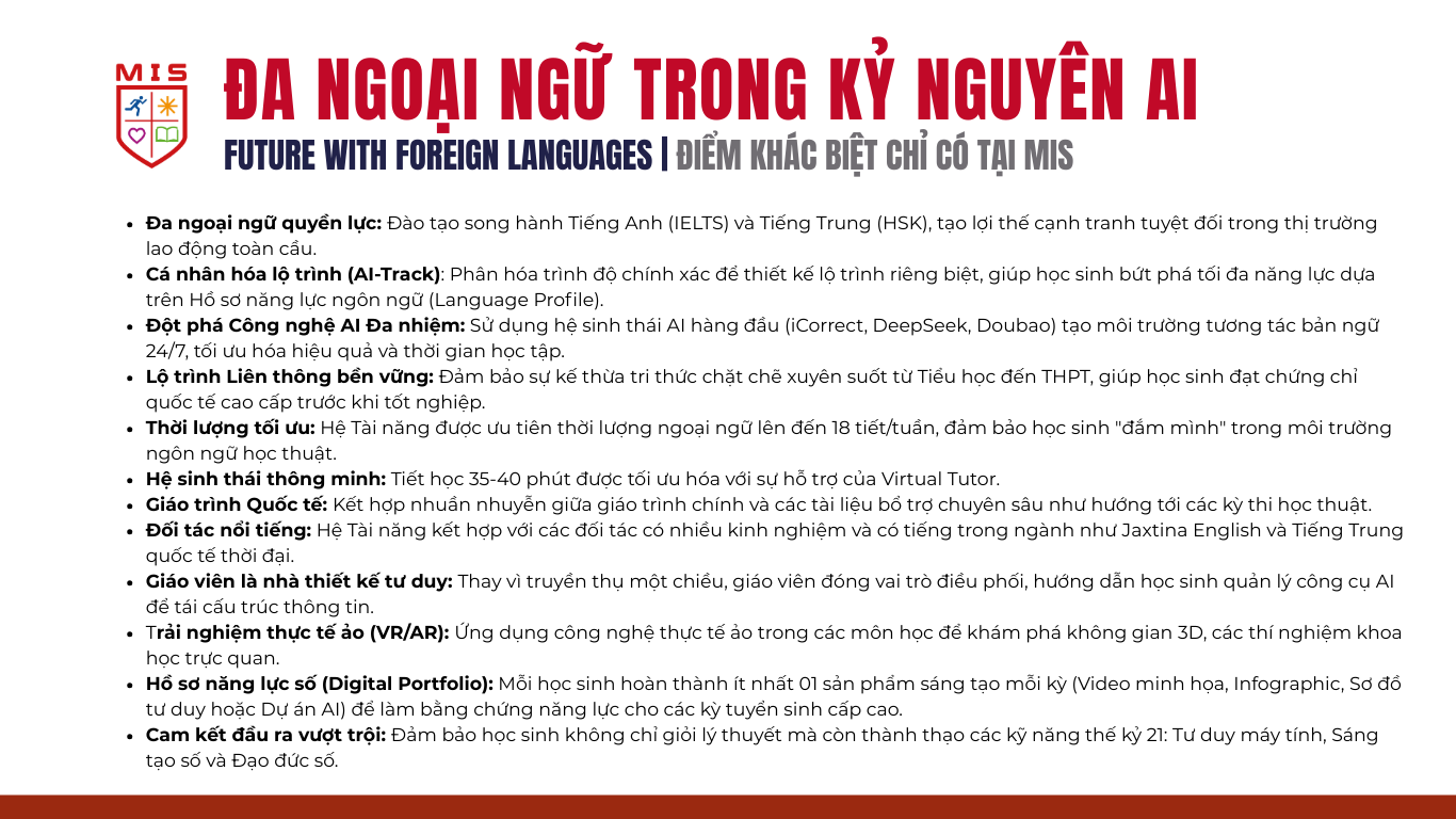 | Tiêu chí | MIS | Trường truyền thống | Trường quốc tế |