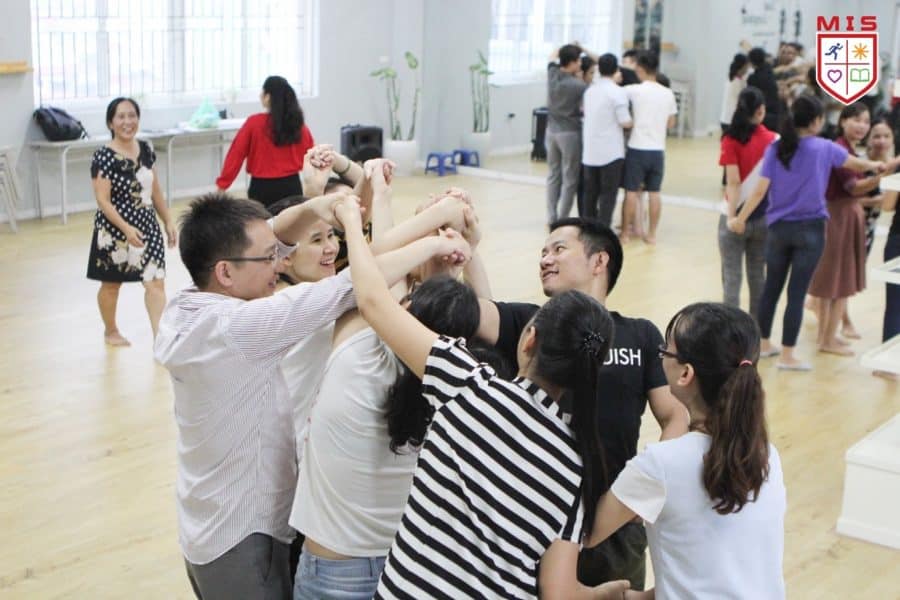 Hoạt động được bình chọn là “máu lửa nhất” mang tên: “Giải phóng hình thể”. Bất kể đã từng nhảy múa hay chưa, bất kể có thích nhảy múa hay không, bất kể có biết lắc hông, giật vai hay không… nhưng với quyết tâm chảy sẵn trong mình kết hợp năng lực truyền tải “máu lửa” của giảng viên, các thầy cô MIS đã cùng nhau tập và luyện nhảy liên tục 4 bài dance “tăng nhịp tim” và “hạ nhịp tim”… mang các phong cách Latinh, hiphop dance, dân vũ, thư giãn yoga… Thày Phạm Ngọc Thanh – GV Địa lý hồ hởi: “Giải phóng cơ thể hóa ra không phức tạp. Cả thày và trò đều làm được rất dễ dàng. Vừa rồi, chúng tôi đã phải đổ mồ hôi rất nhiều, nhưng kết quả là cảm giác rất sảng khoái và hiệu quả, bây giờ tôi tràn đầy năng lượng.”.