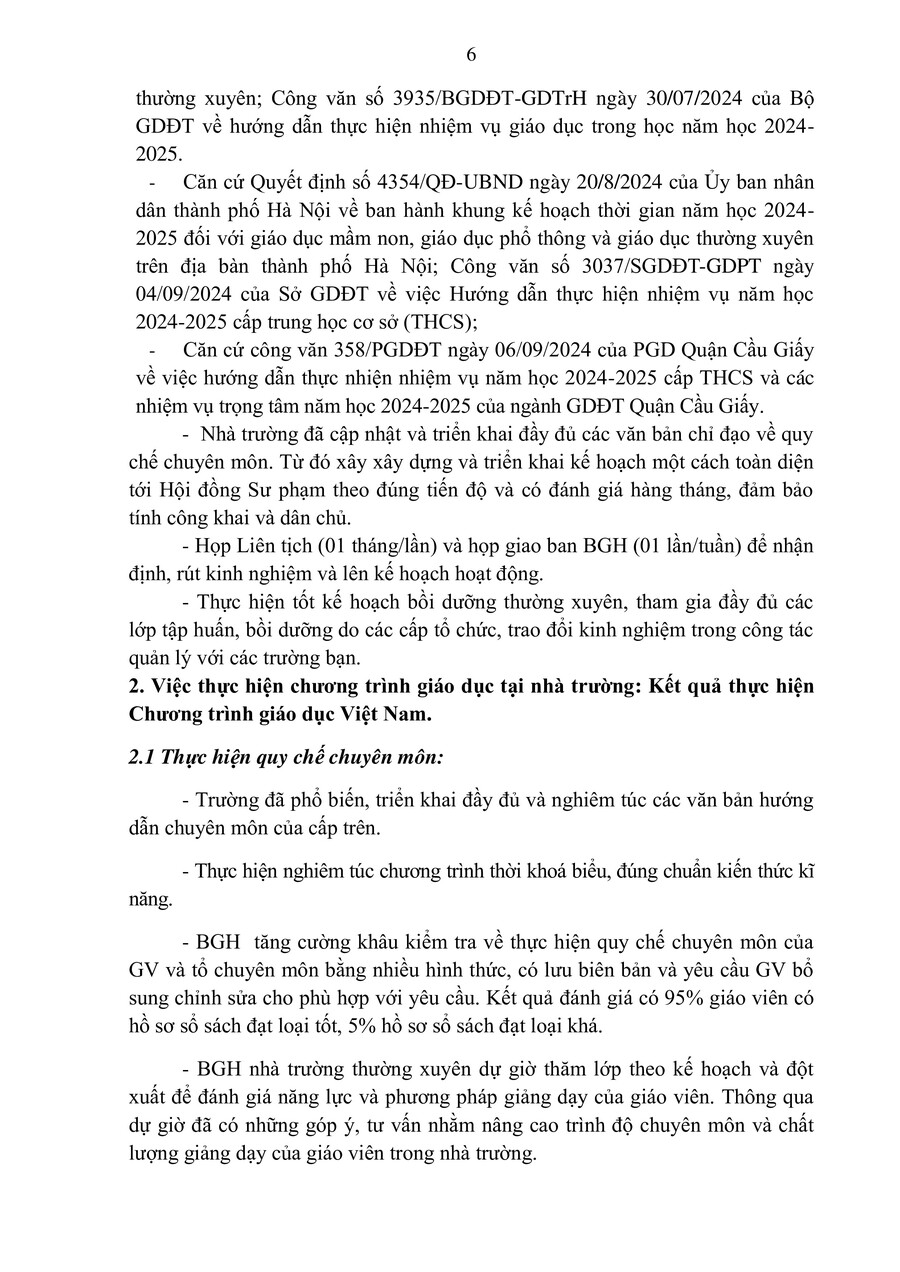 BÁO CÁO THƯỜNG NIÊN CHẤT LƯỢNG GIÁO DỤC HỌC KÌ 1 CẤP TH,THCS&THPT NĂM HỌC 2024-2025