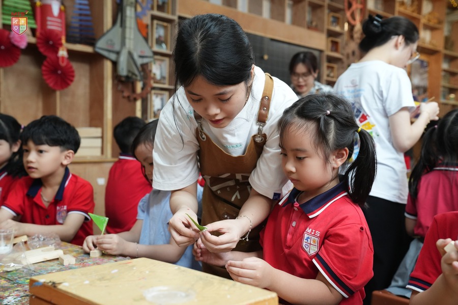 Các bé đã có một ngày thật sự thú vị khi được tham gia vào các hoạt động học tập và trải nghiệm tại Xưởng Sáng Tạo. Tại đây, MISers không chỉ được tìm hiểu về các khái niệm STEAM một cách sinh động mà còn được chủ động tham gia vào các thí nghiệm vô cùng hấp dẫn như: thử thách bắn vòng tròn khói từ súng thần công, mô phỏng các hành tinh trong hệ mặt trời bay lơ lửng trên không bằng súng hơi, mô thức nhảy dù trong lồng hơi để hiểu về ứng dụng của sức gió và không khí,…