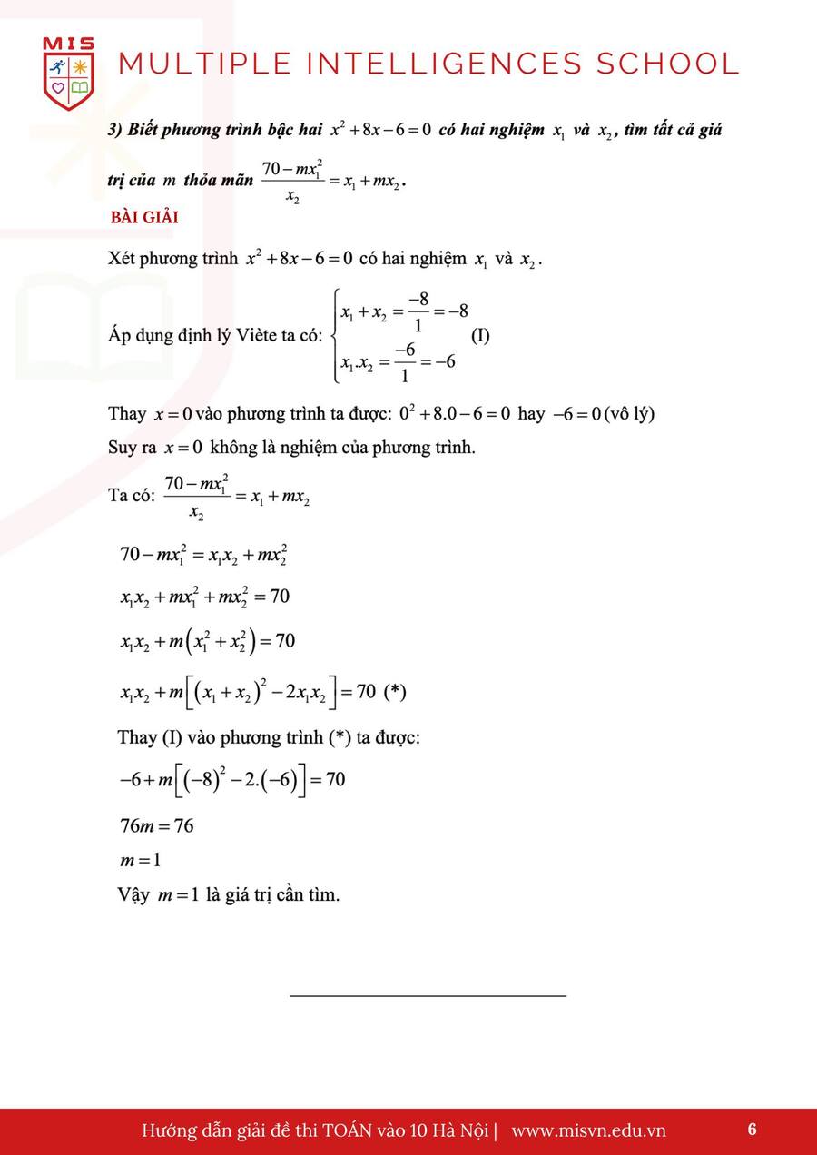 MIS mời ba mẹ cùng các con xem đáp án môn Toán sáng ngày 08.6.2025.
