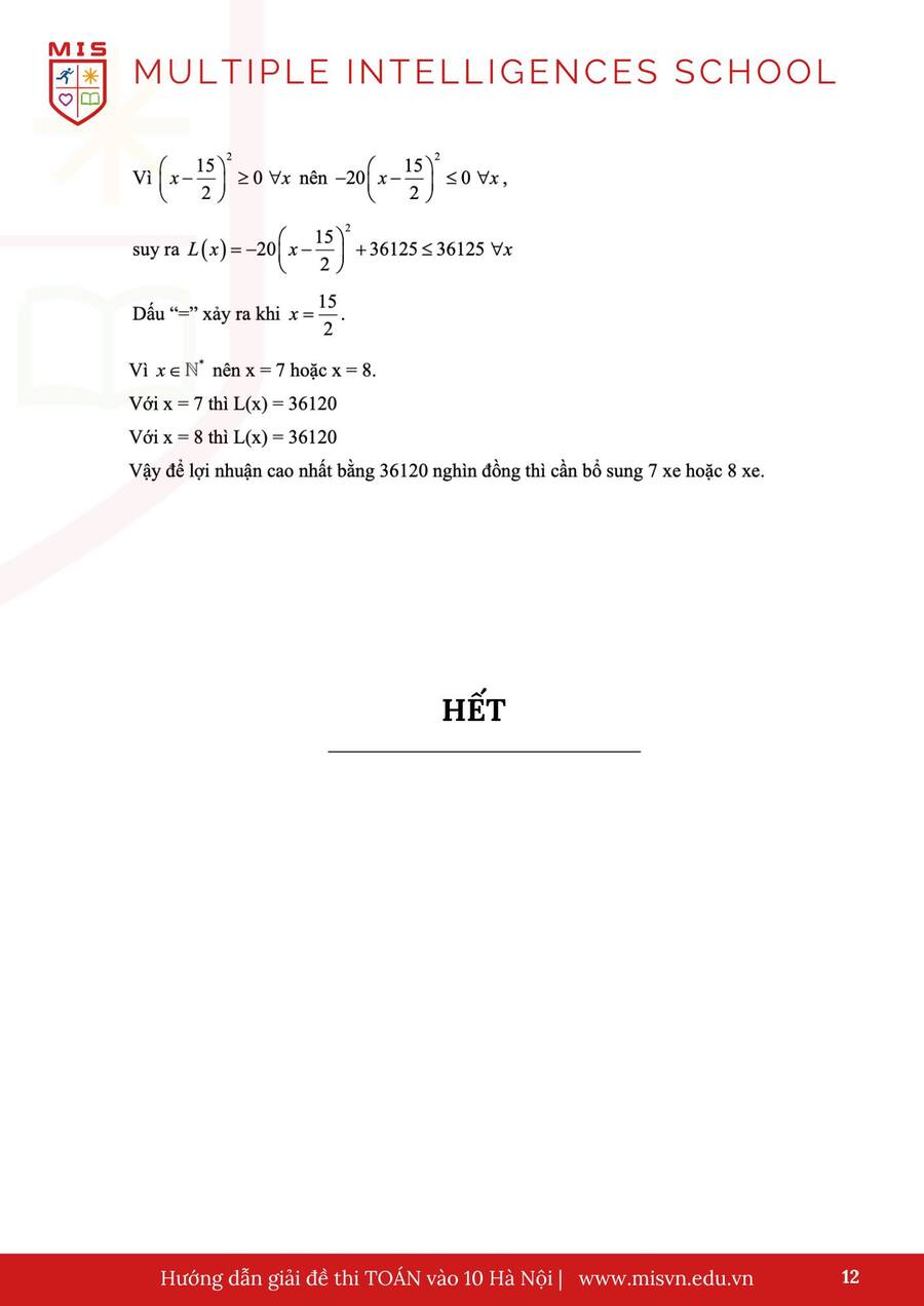 HƯỚNG DẪN GIẢI ĐỀ TOÁN
