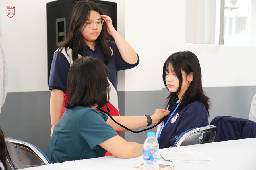 Qua đợt khám sức khỏe định kỳ, MISers được đánh giá tổng quát về thể lực cũng như sự tăng trưởng của cơ thể như: kiểm tra về chiều cao, cân nặng, thị lực, thính giác, tâm thần, vận động, thăm khám các bệnh về tiêu hóa, hô hấp… để học sinh có thể phát triển một cách toàn diện.