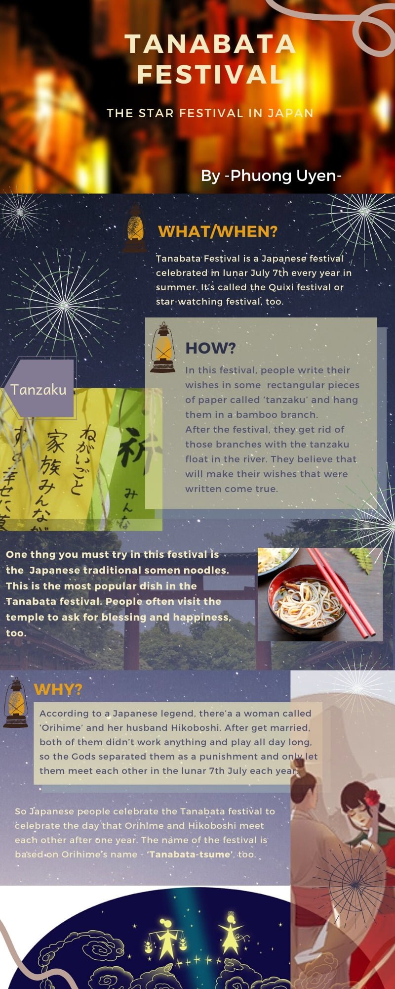 Quá trình giảng dạy trực tuyến (online) trong thời gian dịch bệnh Covid-19 hoành hành vừa qua, các thầy cô trường Đa Trí Tuệ (MIS) đều cố gắng tìm tòi các phương pháp giúp các con tiếp thu được bài học một cách tự nhiên và thoải mái, hiệu quả nhất. Cô đã thấy một số thầy cô trong trường sử dụng nhiều công cụ mới rất hay, đặc biệt là áp dụng hình thức thiết kế Infographic vào trình bày bài học. Cô cũng thấy hào hứng thích thú lắm, nhưng chưa biết nên ứng dụng bằng cách nào cho phù hợp. Rồi khi cô và trò tìm hiểu đến đơn vị bài học thứ 9 với chủ đề Festivals around the world (Lễ hội vòng quanh thế giới) trong chương trình Tiếng Anh lớp 7, hình ảnh của những tấm Infographic màu sắc về các lễ hội trên thế giới đã lóe lên. Cô quyết định: thay vì yêu cầu các con làm bài viết trong phần kỹ năng Writing trên Words hay Padlet như mọi khi, lần này sẽ để các con tự tìm hiểu về những lễ hội các con thích trên thế giới và trình bày thông tin dưới dạng Infographic.