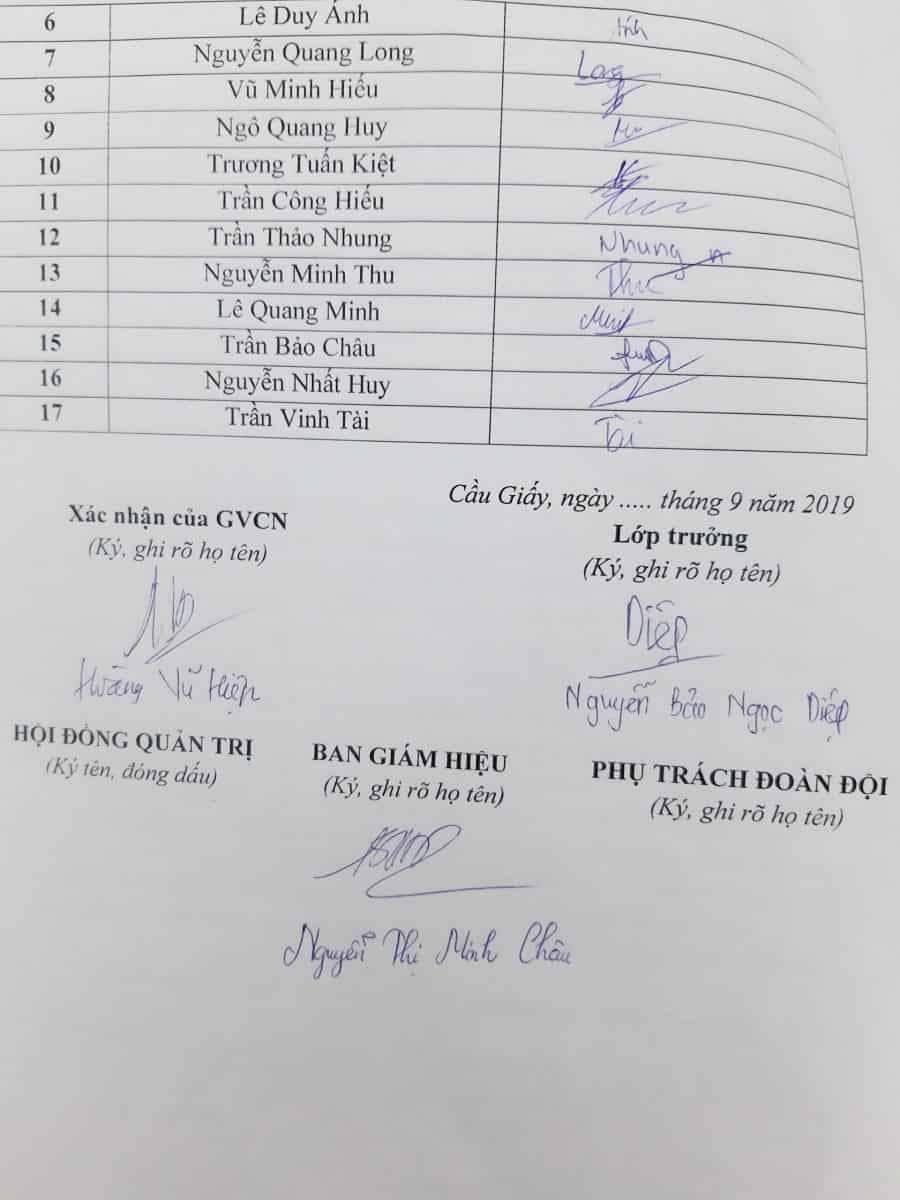 Bản Cam kết An toàn giao thông của học sinh MIS