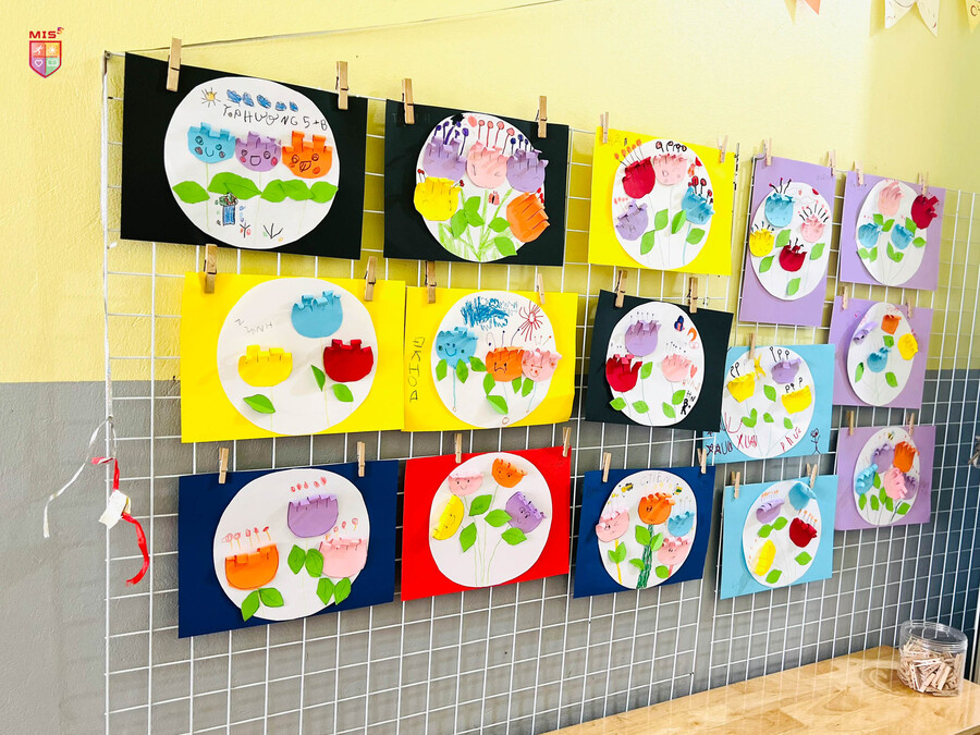 Từ những tờ giấy màu xanh, đỏ, tím, vàng, các bé mầm non đã tạo ra một “vườn hoa” rực rỡ trong giờ tạo hình. Các bé không chỉ cắt, dán mà còn điểm tô cho bức tranh thật sinh động và dễ thương. Có bé vẽ thêm ông mặt trời với đàn bướm xinh đẹp hay bạn ong chăm chỉ kiếm mật, có bé lại vẽ gương mặt của những bông hoa tươi cười. Đó là một thế giới trẻ thơ thật sắc màu.