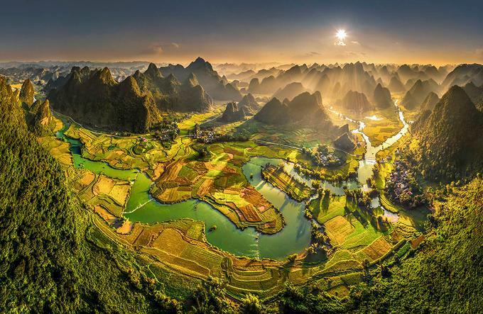 Sông Quây Sơn khi chảy vào địa phận Việt Nam len lỏi qua đồi núi đá vôi, các thửa ruộng bậc thang, bản làng dân tộc Tày, Nùng tại Ngọc Côn, Phong Nậm (ảnh), sau đó đổ dòng tạo nên thác Bản Giốc.