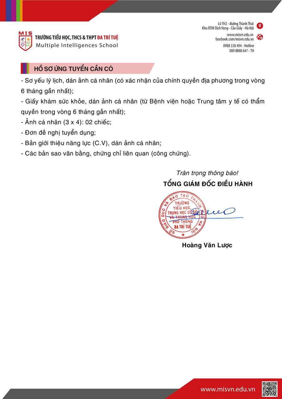 THÔNG BÁO TUYỂN DỤNG TỔNG PHỤ TRÁCH ĐOÀN ĐỘI