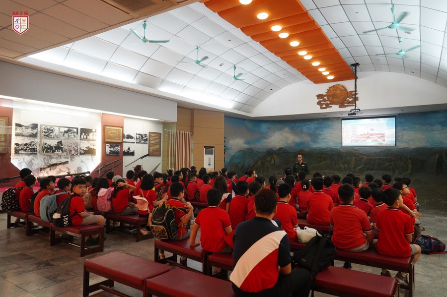 Buổi sáng rạng ngời, ánh nắng ấm dần len lỏi qua những hàng cây xanh mướt, tạo nên bức tranh thiên nhiên yên bình bên ngoài Bảo tàng Quân đội. Với MISers khối 4 và khối 5, đây không chỉ là một buổi tham quan thông thường, mà còn là cơ hội đặc biệt để các con hiểu thêm về một chiến thắng vĩ đại của dân tộc – Chiến thắng Điện Biên Phủ.