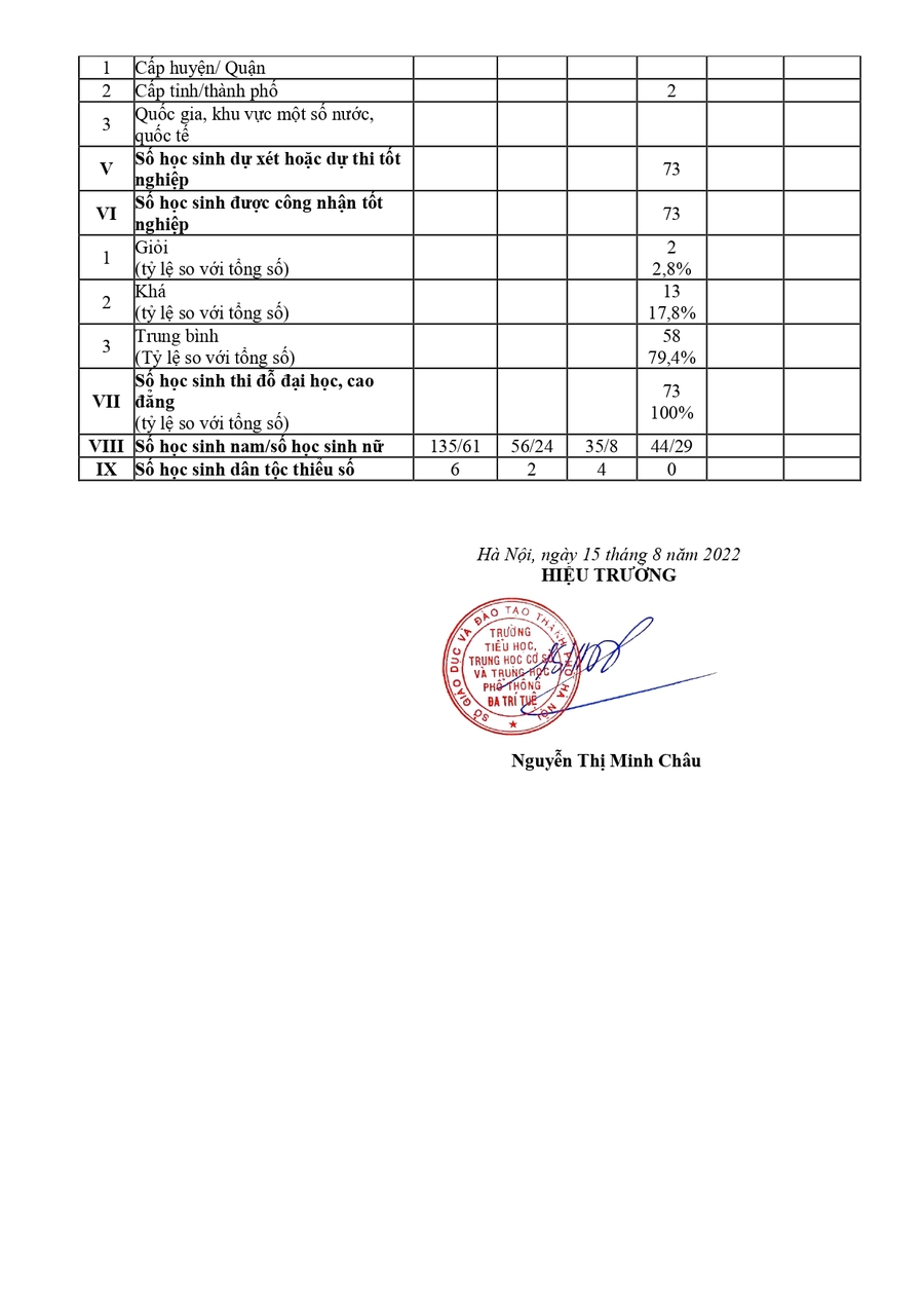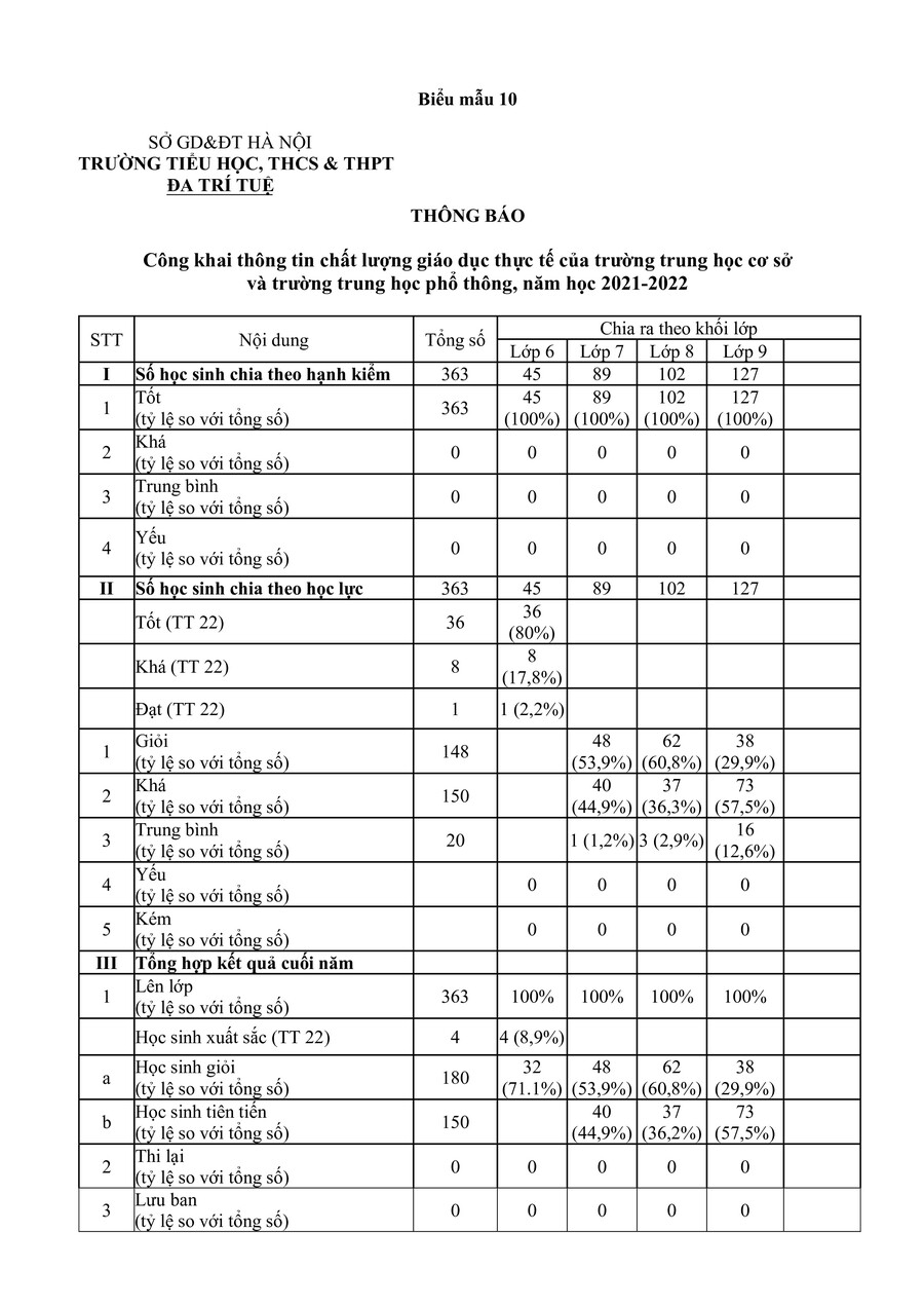 TRƯỜNG TIỂU HỌC, THCS & THPT ĐA TRÍ TUỆ – CÔNG KHAI THÔNG TIN CHẤT LƯỢNG GIÁO DỤC – ĐỘI NGỦ GIÁO VIÊN – CƠ SỞ VẬT CHẤT