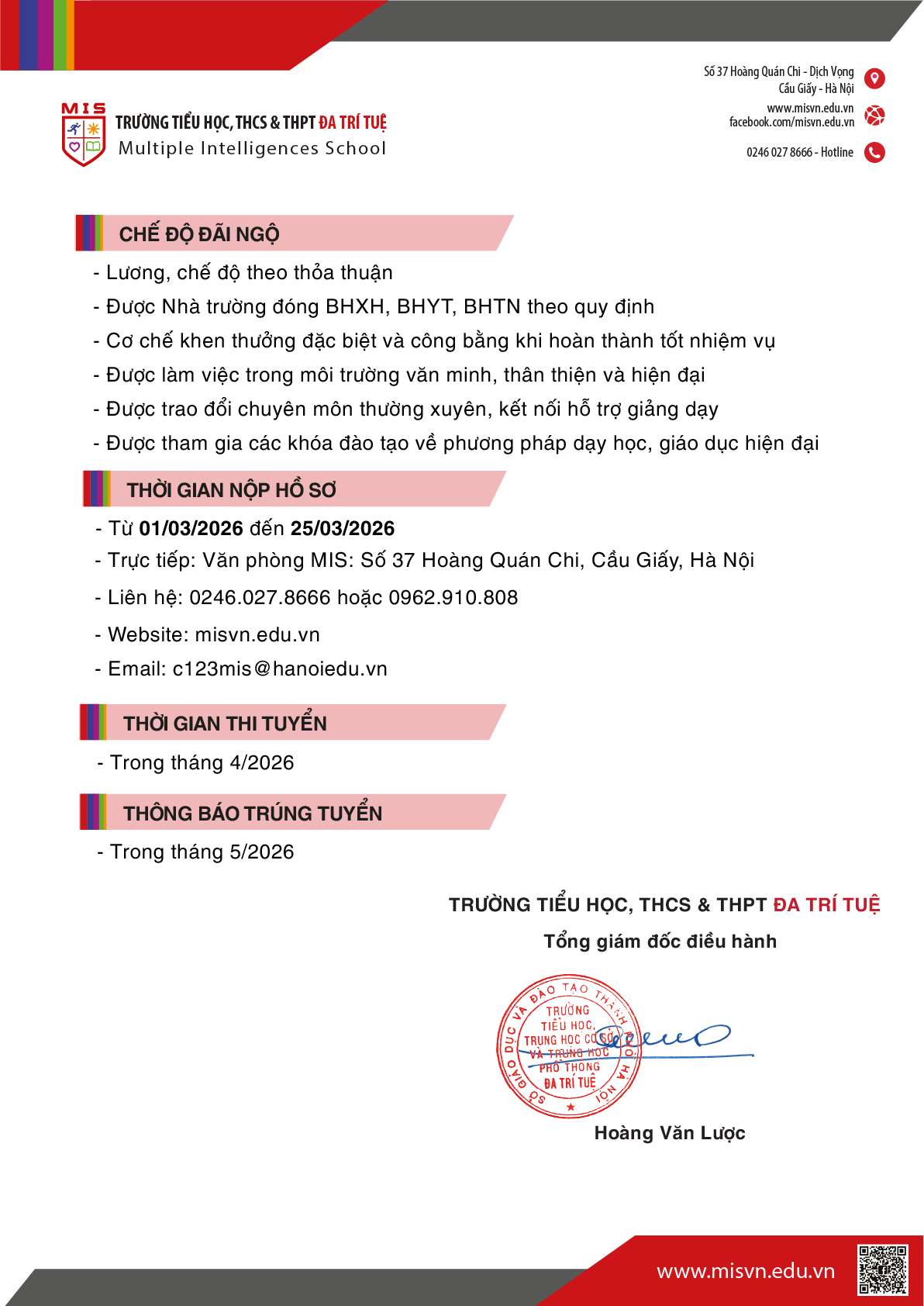 TUYỂN DỤNG GIÁO VIÊN NĂM HỌC 2026 – 2027