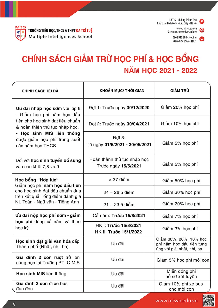 - Giảm học phí từ 3% – 7% cho học sinh đóng học phí theo kỳ hoặc cả năm.